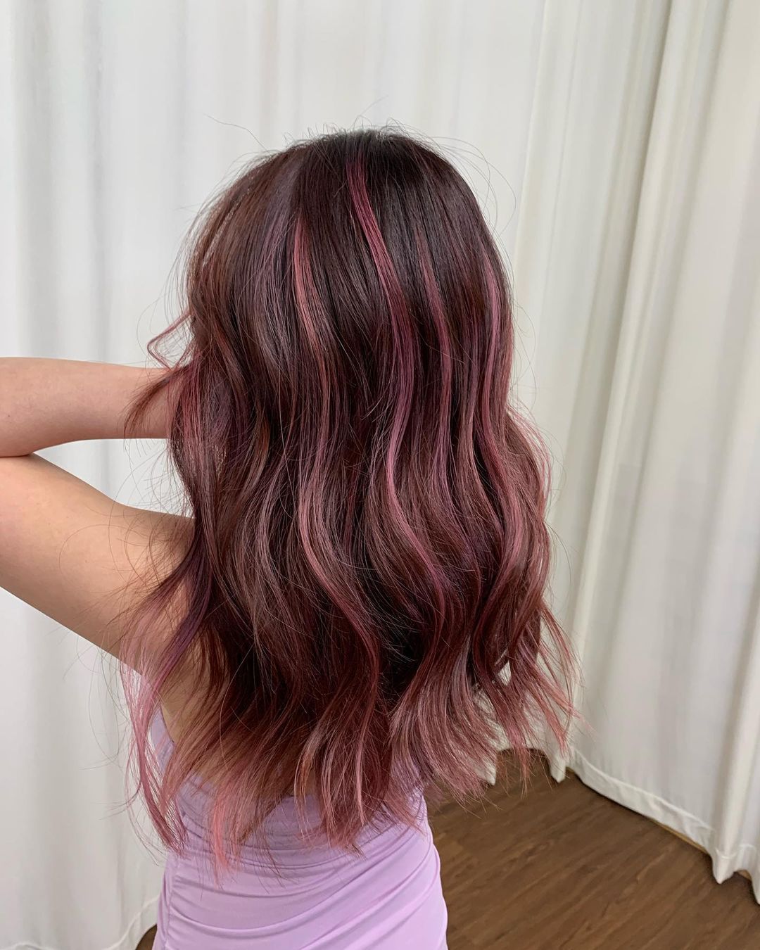 If the hair colour combo is too high-level for your taste, go for pink highlights with a dark brown base for a more everyday – and possibly workplace-friendly look.