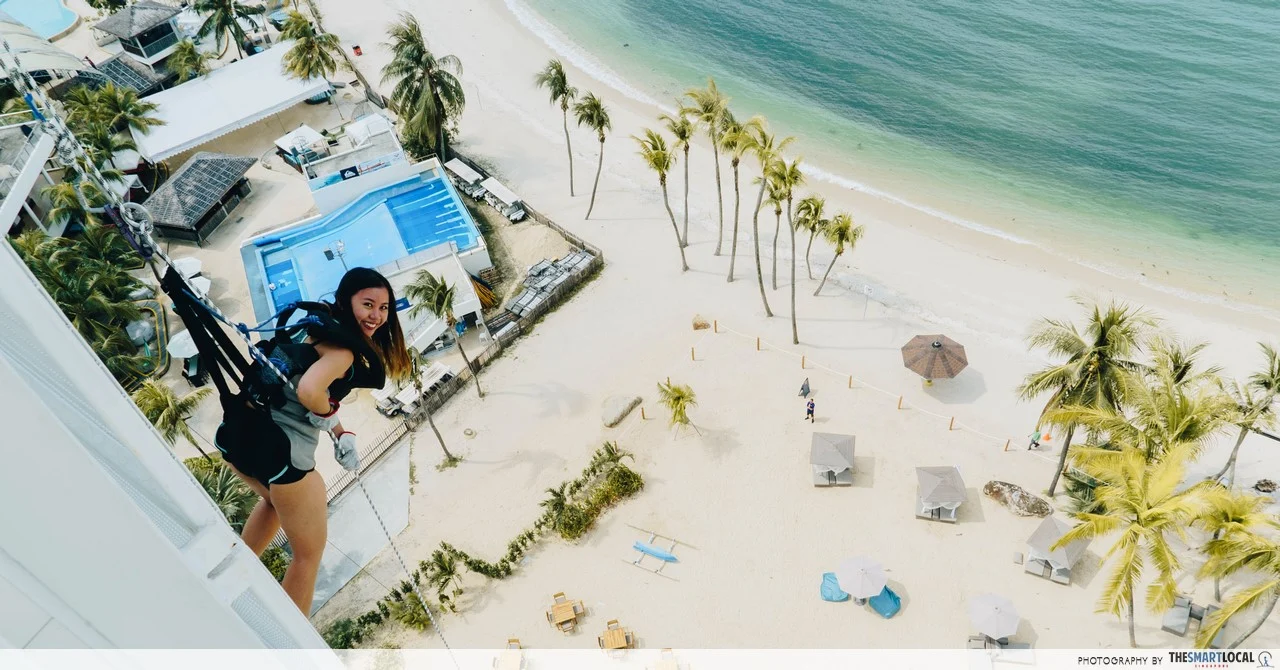 Bungee jump at AJ Hackett with Siloso Beach right below.