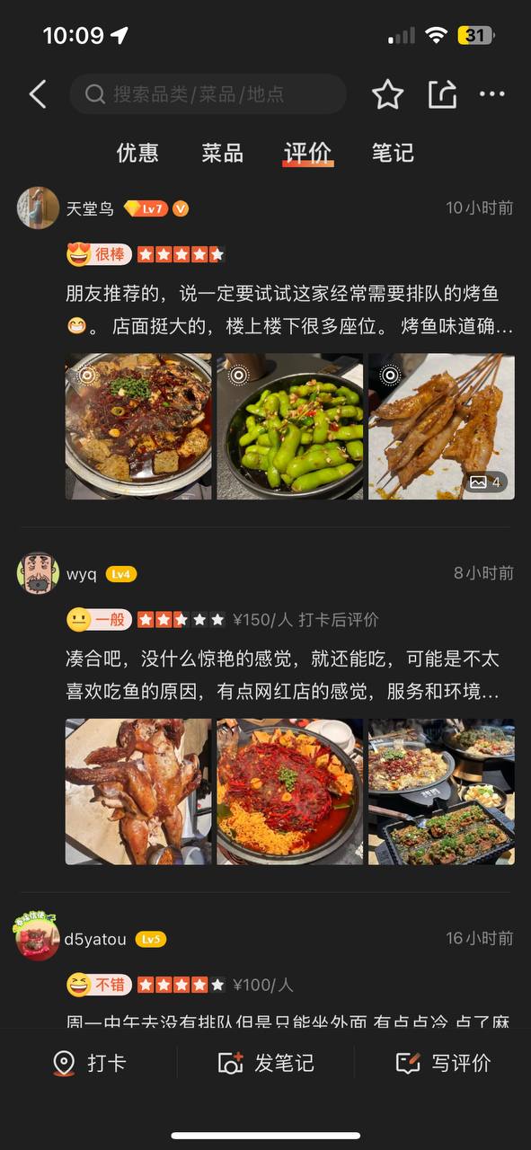 Da Zhong Dian Ping usually auto-detects the city you’re in, but if not, just manually change it to where you are on the top left corner of the homepage. After that, tap on “美食” (měi shí), which means food. See something that catches your eye? Tap into the restaurant page and look out for “优惠” (yōu huì) to check for any discounts. Scroll down to see reviews and pics from fellow diners.