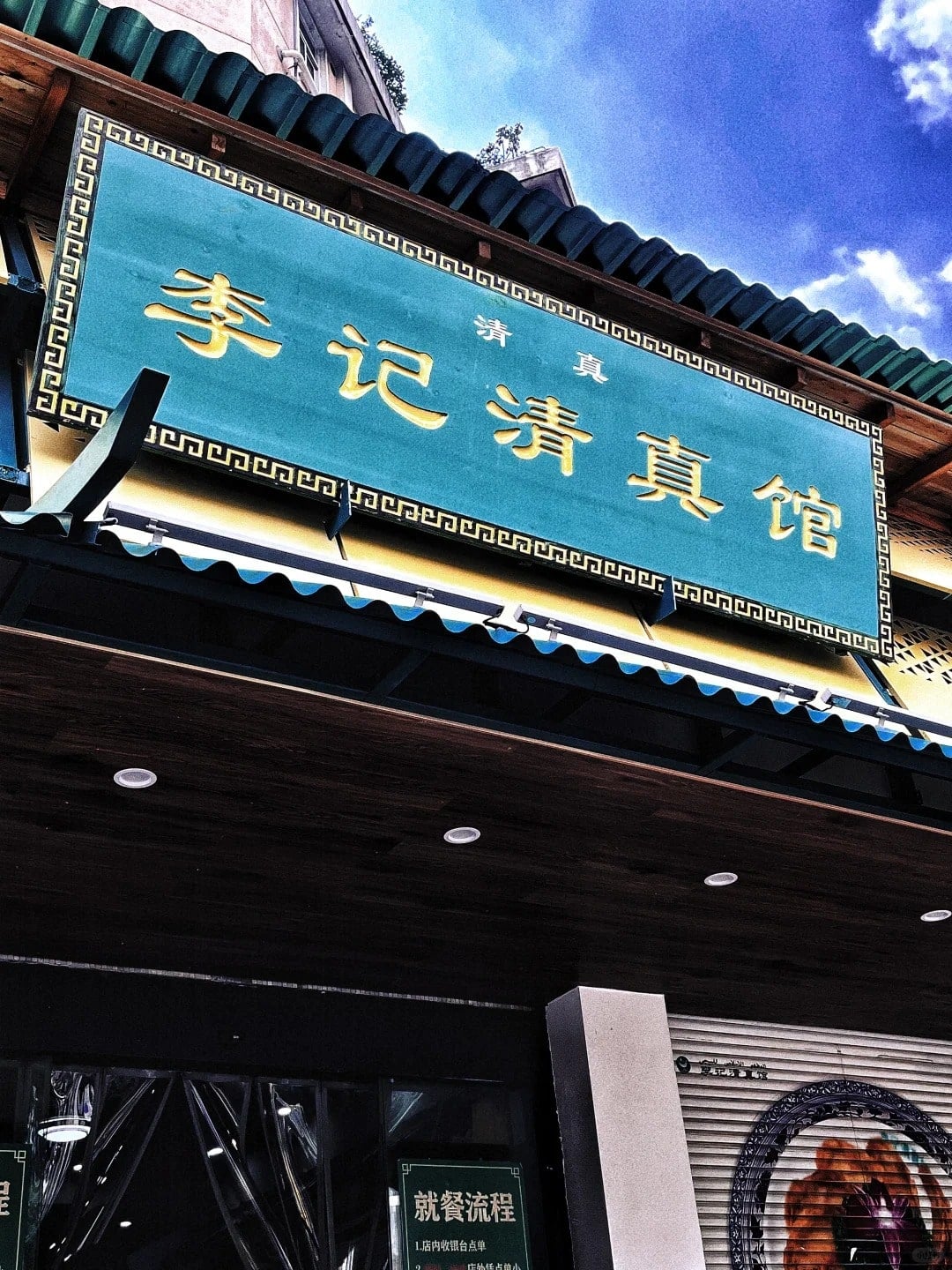 The board on the bottom left that reads “清真标志牌” translates to “halal sign.”