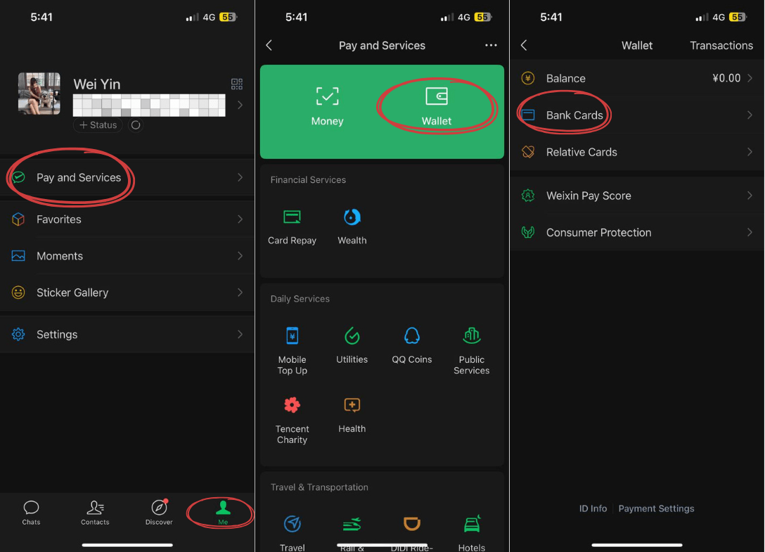 Like Alipay, you’ll need to link your credit card to use WeChat for payments, and yes, there’s also a 3% transaction fee for anything above RMB200 (~S$35.57). Tap on “Me” followed by “Pay and Services”. Then, tap on “Wallet” and “Bank Cards” to link your credit or debit card. Easy peasy.