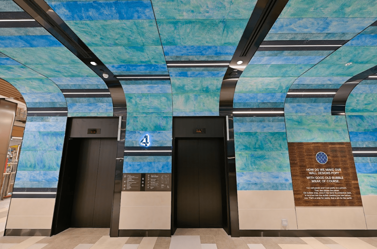 In case you didn’t know, City Square Mall is the first eco-mall in Singapore. That shines through in their revamp, with repurposed materials making up the sleek new fixtures. For instance, recycled chopsticks are used to form wall claddings, while bubble wrap and plastic bottles are given new leases of life in the form of stylish panels at the lift lobbies.