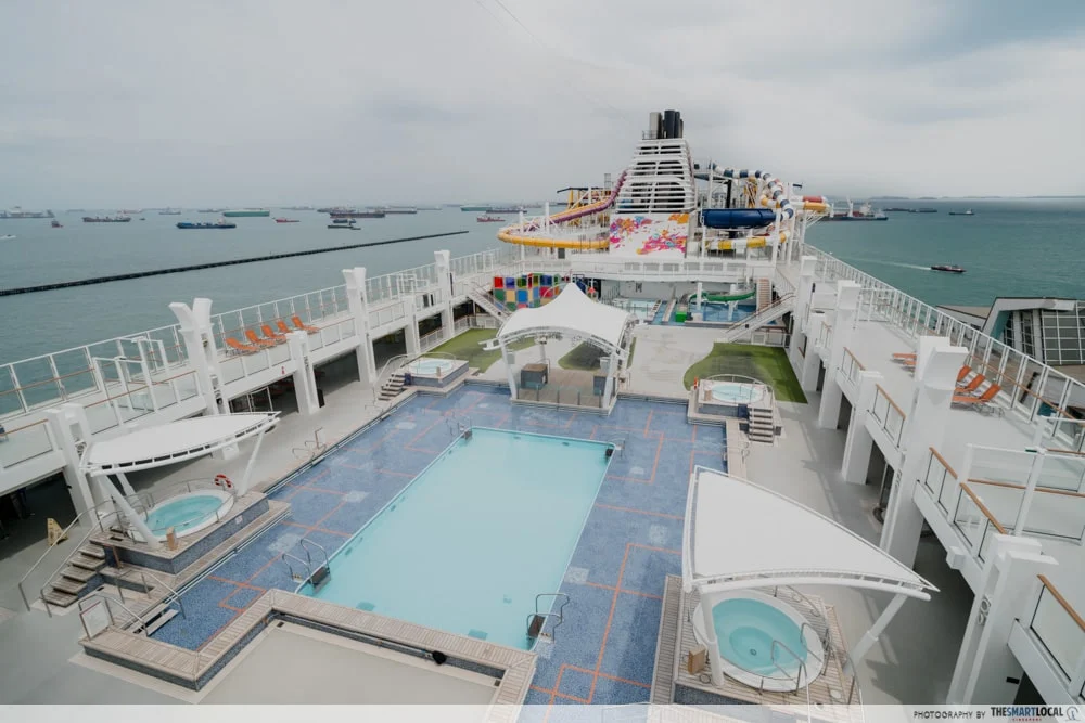 The main pool deck of the Genting Dream.