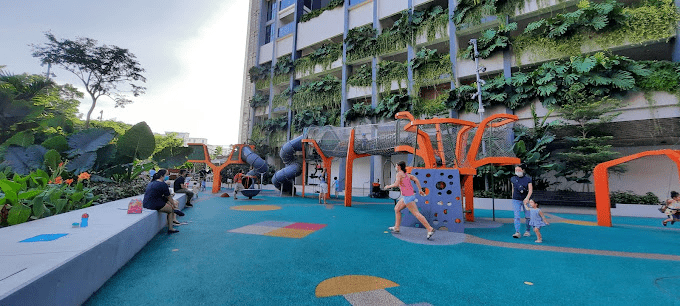 Just 2 minutes away from the Paya Lebar MRT station is PLQ Parkside, where you’ll find sprawls of green with a playground sandwiched between office and residence buildings.