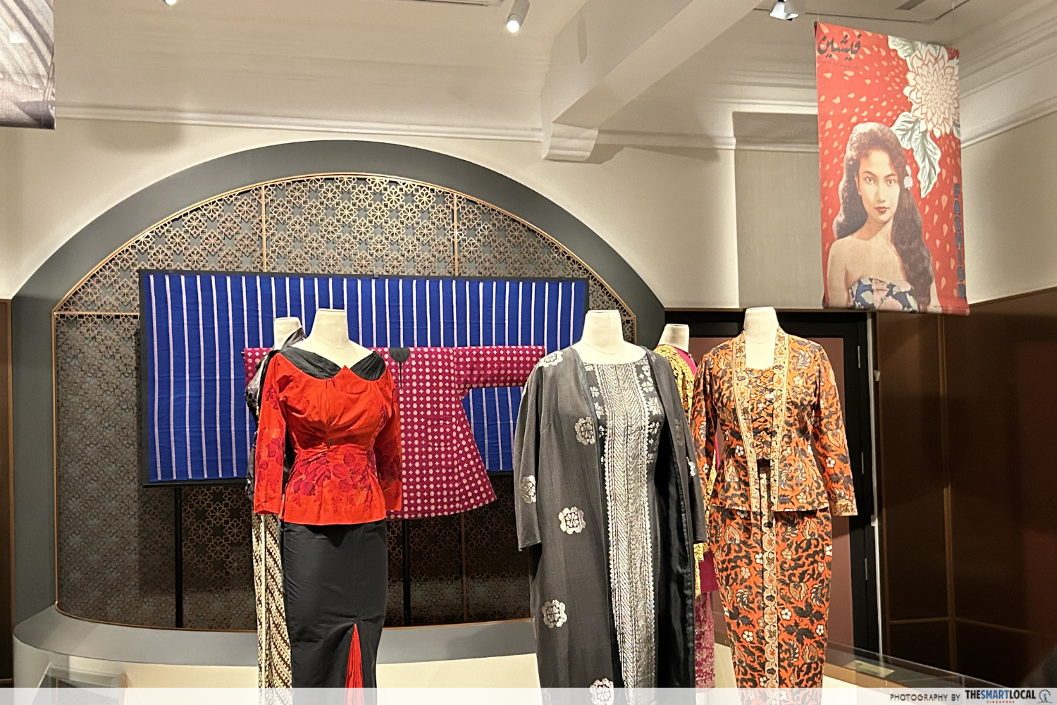 You’ll even get to see original costumes, like the red and black kebaya worn by K Fatimah in the film Ibu Mertuaku, as well as tapestry prints of magazine covers featuring the women.