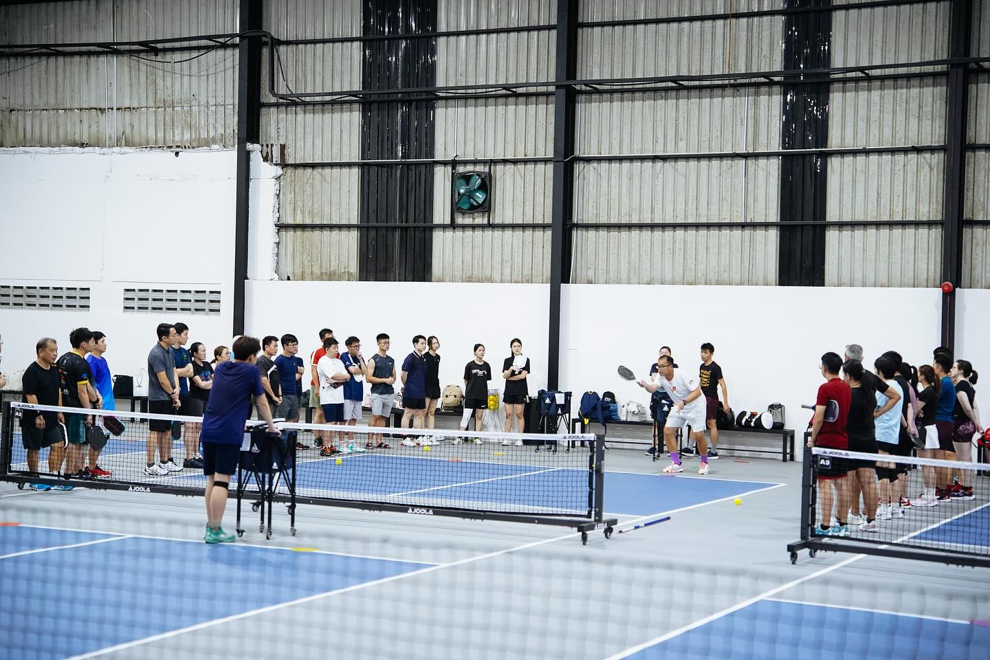 With its high ceilings and exposed pipes, the huge indoor space honestly gives Suntec City Convention Centre vibes. Even though the space is bordered by grey walls, they’re spruced up by banners featuring the court’s cute pickle mascot.