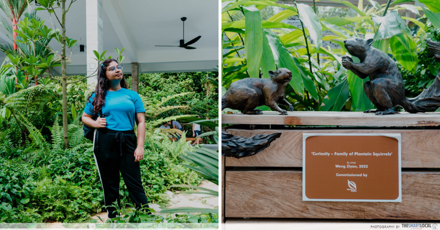 Keep an eye out for poles along the way with figures of animals on them as you walk – they’re representative of the furry friends that inhabit the park, like squirrels and colugos.