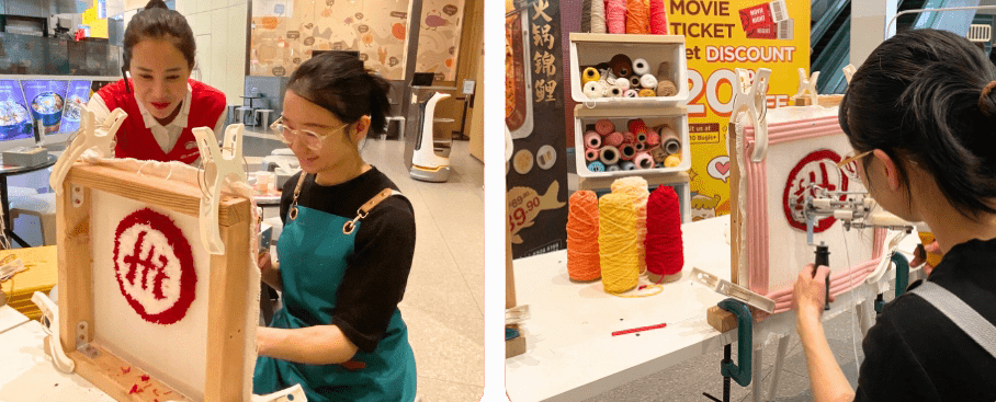 Head down to Haidilao Bugis+ which offers rug tufting services where you can choose from 30 design options, including Haidilao’s iconic logo. There are staff members on standby to give you tufting tips should you need any assistance, so no worries if you’re a first-time tufter