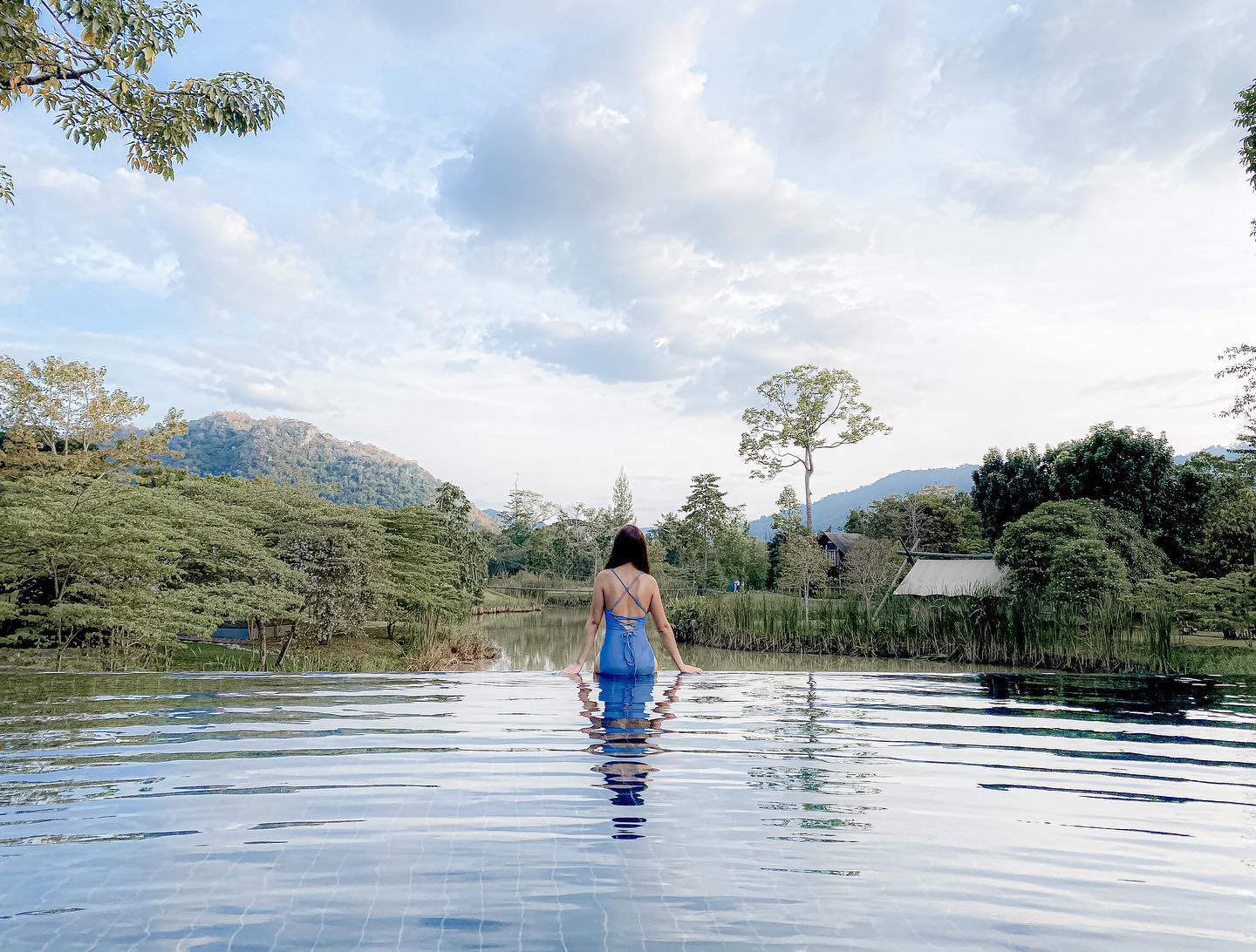 The resort comes with an infinity pool that overlooks the mountains and forests.
