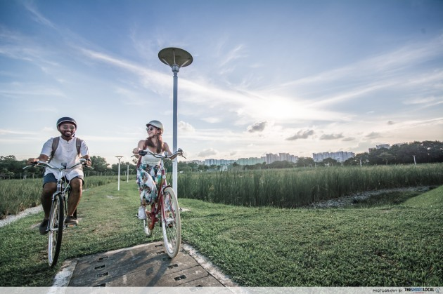 While you’re there, try to spot the Lorong Halus Red Bridge that spans across the Punggol-Serangoon Reservoir, and is a great sunset viewing spot. The bridge is also the gateway to Punggol Waterway Point, just a 10-minute bike ride away.